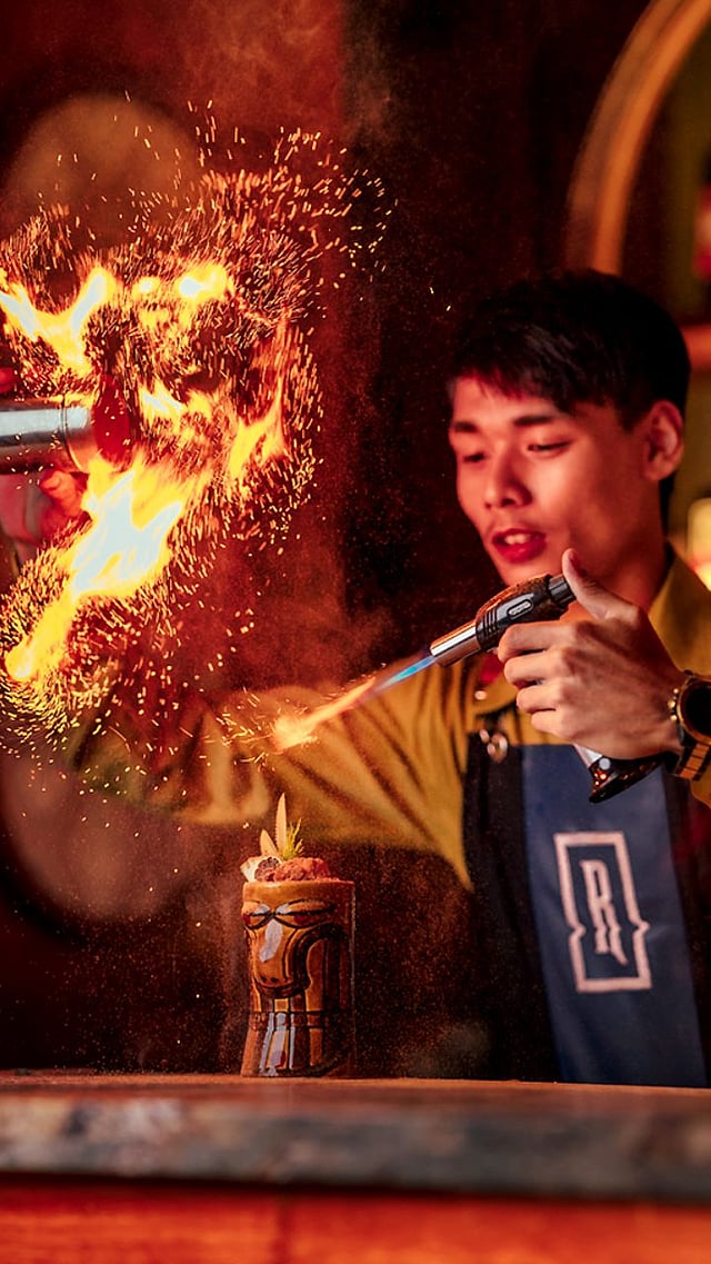Drink your way through a selection of 12 signature cocktails. Inspired by Dragon Boat Festival in China, a 16-foot-long canoe, sourced from Kerala, has been used to create a dramatic light feature. Every drink has a story to tell.