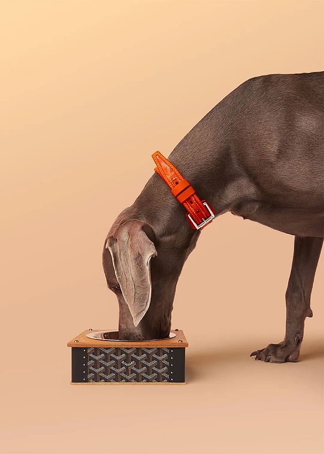 Crafted in Goyardine Canvas and Clamecy Cowhide, it’s light, adjustable, and finished with a leather tab that protects your pet’s neck, available in a rainbow of Goyard shades.