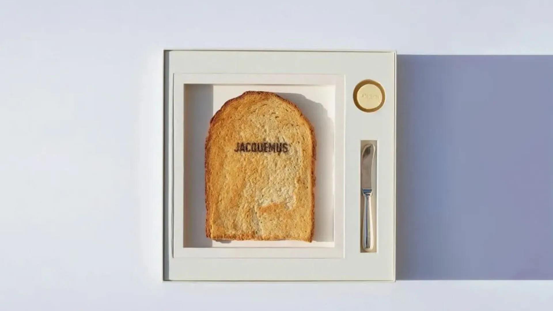 Jacquemus sent out an encased piece of toast (completely real and very much edible), bread knife, and dab of butter with printed brand logo for an event held at Galerie Lafayette in 2023. Additionally, there was a pack of cookable Jacquemus letter pasta for its Como performance.